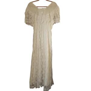Vintage 80’s Scott McClintock White Lace Boho Romantic Feminine Wedding Gown