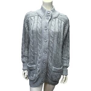 Vintage 80s Sears Men's Gray Cable Knit Cardigan Sweater Chunky Size 44