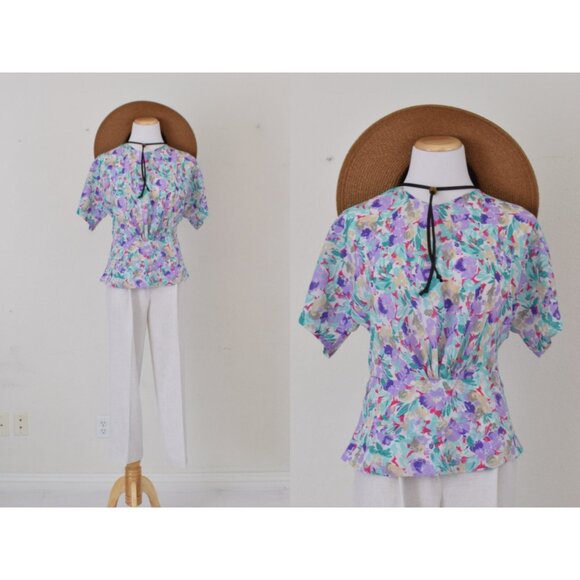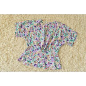 Vintage 80s Semi-Sheer Floral Polyester Peplum blouse | size 8