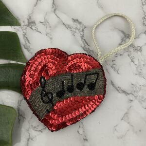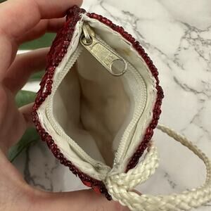 Vintage 80s Sequin Coin Pouch Mini Bag Red Heart Music Notes Beaded Shiny