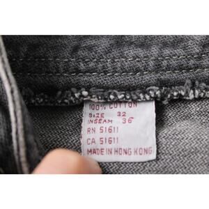 Sergio Valente vintage 1980's straight leg jeans size 32waist 36 inseam. Faded black wash, pocket stitching and label. Made in Hong Kong. Rise 11.5 in. Good vintage condition. See close up photos, 2 small marks near knees, see last 2 close up photos.