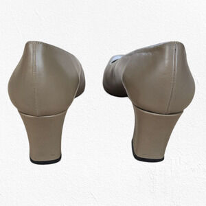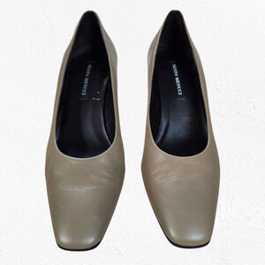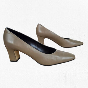 Vintage 80s Sesto Meucci Tan Taupe Square Toe Block Heel Leather Pumps Size 9.5