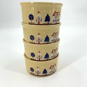 Vintage 80s Set of Four Ramekins Souffle Casserole Bowls Tan Country Village