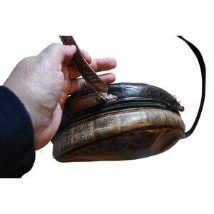 Vintage 80s Sharif Faux Animal Reptile Skins Brown Black Tan Canteen Purse Bag