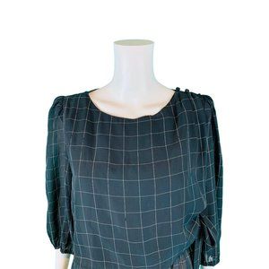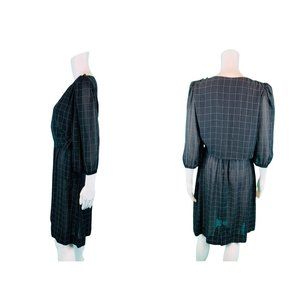 Vintage 80s Sheer Dress Womens Medium Black Windowpane Waist Tie