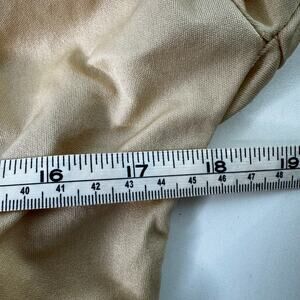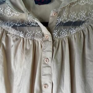 Vintage 80s Shiny Tan Blouse Lace Trim Button Up Shirt Women’s Medium Taiwan