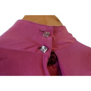 Vintage 80s Top by Paul Alexander - Size 6- 100% Silk - Eyelet Crochet Detail - Tiered Bib Collar w Bow - Clear Rhinestone Shaped Beaded Detail - Slightly Faded - Vintage 1980s - Coquette Girl - Feminine - Pink - Embroidered - Pretty