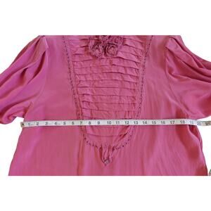 Vintage 80s Shirt Womens 6 Pink Silk Eyelet Bow Coquette Romantic Girly Top