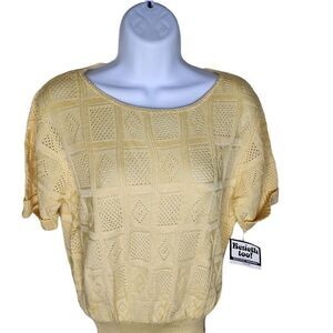 Vintage 80s Short Sleeve Pullover Sweater Womens Size L Yellow Open Knit NEW