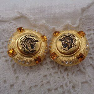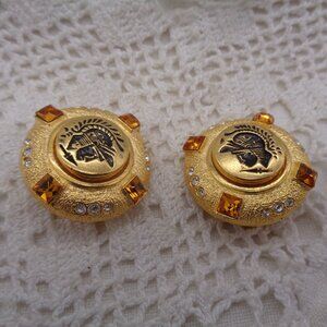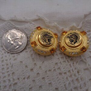 Vintage 80's Signed CRAFT Gold Tone Amber Rhinestone ROMAN SOLDIER Clip EARRINGS