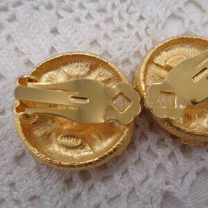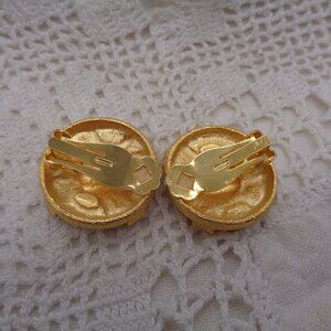 These unique vintage '80's clip earrings are signed CRAFT. They are textured gold tone, with a Roman soldier in the middle and tiny clear accent rhinestones and square cut amber colored rhinestones. They measures 1" and are in excellent condition. Check out my closet....bundle and save on shipping!
