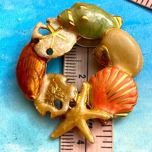 Vintage 80s Signed JJ Gold Toned & Enamel Seashells & Starfish Broach!