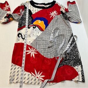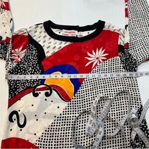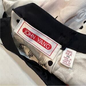 Vintage 80s Silk Abstract Modernist Blouse John Yang Size 14 Tunic Length Black Red White