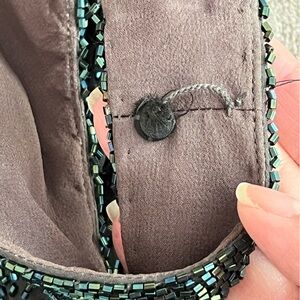 Vintage 80’s Silk Allover BEADED DRESS Shimmer Low Back Sleeveless Black Green 4
