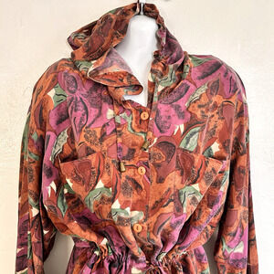 Vintage 80s Silk Floral Hoodie Shirt Women's L Jacket By Silk Plus