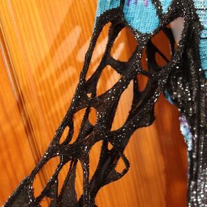 Made in India of 100% silk, this dress is richly textured and fluid, designed to catch the light from every angle. A back slit allows for movement, and the lining plus weight of the beadwork give it a luxe, couture-level drape. This is the type of gown you see in editorial photoshoots, red-carpet flashbacks, or cult-favorite vintage shops — wearable art and a collector’s piece all in one.
