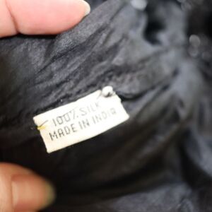 Condition: Gently used pre-owned. All beads/sequins appear intact with only minor stray threads typical of true vintage. No brand label beyond “100% Silk – Made in India.” An extraordinary example of hand-embellished craftsmanship from the 80s