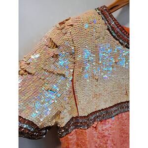 Pre-owned with a missing strand of sequin near right left sleeve when wearing. A couple small beads missing near collar on the back, Side near hip also has missing sequin. All pcitured!
