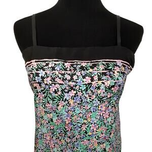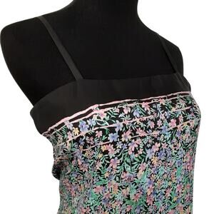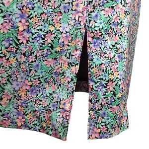 Vintage 80s Silk Slip Dress Ditsy Floral Shift Mini Dress Coquette Womens L