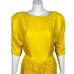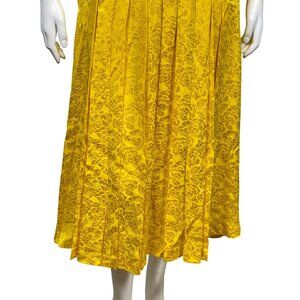 Vintage 80s Silk Studio 100% Silk Midi Dress Size 10 Floral Jacquard Pleated