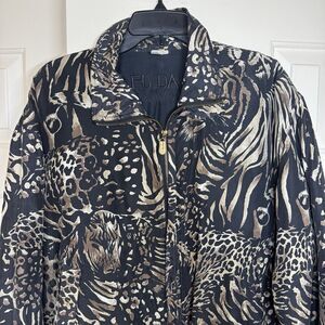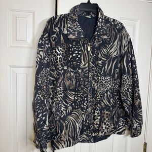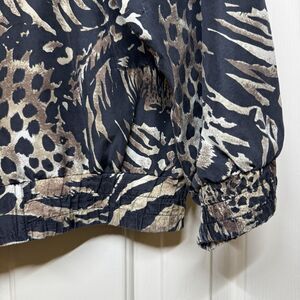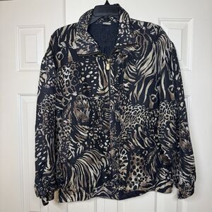 Vintage 100% Silk Animal Print Bomber Jacket by FUDA International Size Medium (size tag is missing. See measurements below) Approximate measurements lying flat: Pit to pit - 26” Length - 27” Two exterior pockets Full zip Very good pre-owned condition! Fast shipping! Smoke free home!