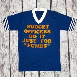 Vintage 80s Single Stitch Budget Officer Do it for Funds Humor 1980s Tshirt