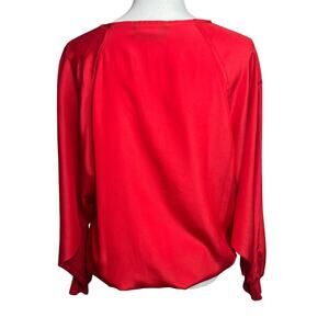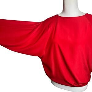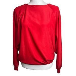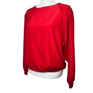 Vintage 80s Size Medium Red Dolman Sleeve Blouson Top Long Sleeve Lightweight