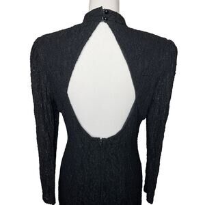 Vintage 80s Size Small Black Lace Cocktail Dress Cut Out Mock Neck Backless Goth
