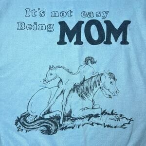 Vintage 80s Size XXL Blue Its Not Easy Being Mom Horse Sweatshirt Equestrian