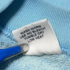 • Soft baby blue cotton/polyester blend fleece, made in the USA