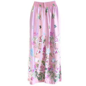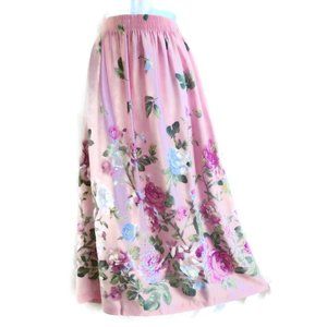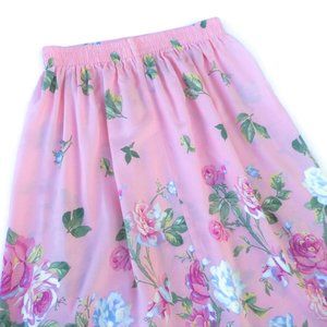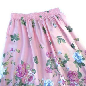 Vintage 80s Skirt Pink Floral Midi Full Style Exchange Cottagecore USA L