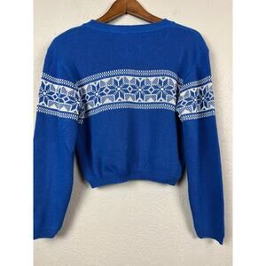 Vintage 80s Smooches Sweater Arglye V Neck Long Sleeve Blue - L