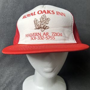 Vintage 80’s SnapBack Mesh Trucker Hat Adjustable Cap Red Royal Oaks Inn