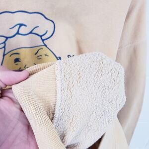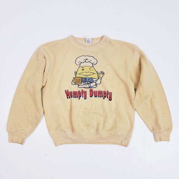 Comfy vintage 80s crewneck sweatshirt in light mustard yellow, featuring Humpty Dumpty character.