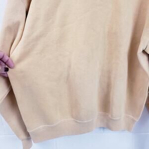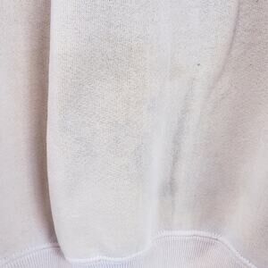 Good pre-owned, worn condition. Sweatshirt is in great shape, structurally. There are no holes, rips, or pilling. Graphics are in good condition. There is a subtle all-over dye-transfer with darker areas near collar and waistband. There is also marks to the fabric on the right sleeve.