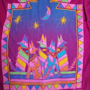 Vintage 80s Southwest Desert Dogs Coyotes Neon T-Shirt
