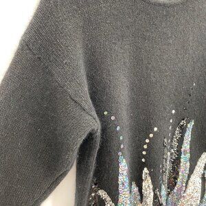 Vintage 80s Sparkly Silk Angora Black Sweater Abstract Sequins M Metallic Retro