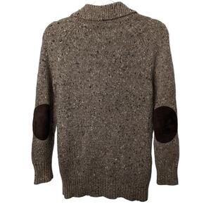 Vintage 80's Speckled Wool Blend Collared Henley Sweater Pockets Elbow Patches Men's Unisex