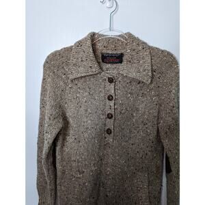 Vintage 80's Speckled Wool Blend Collared Henley Sweater Pockets Elbow Patches