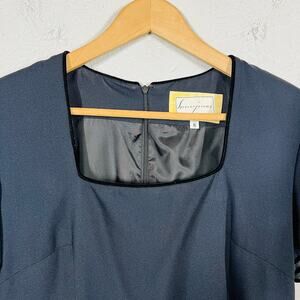 Vintage 80s Spenser Jeremy Dress Short Sleeve Velvet Trim Button Side Slit - 8