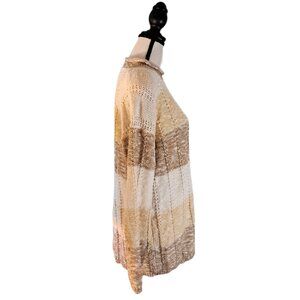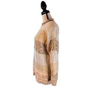 Vintage 80s Spice of Life Knitted Sweater Women’s Medium Beige Tan Stripe Textured Pullover Long Sleeve Ramie Cotton Blend | Excellent Condition