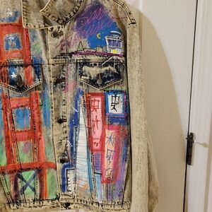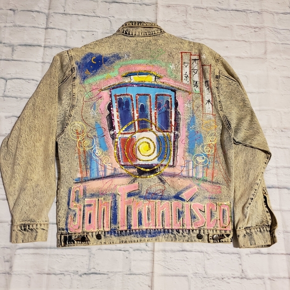 Vintage 80s Sport DECO Denim Jacket! SAN FRANCISCO Golden Gate Bridge Tr…