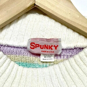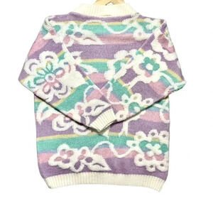 Vintage 80’s Spunky Fairy Kei Kawaii Pastel Flower Print Sparkle Knit Sweater