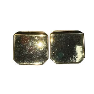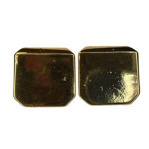 Vintage 80s Square Earrings Gold Tone Metal Clip-On Geometric Shape Shinny