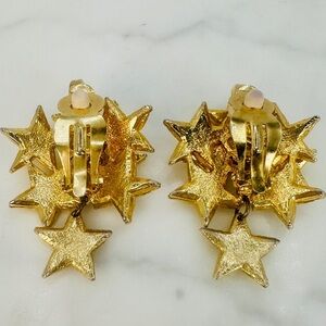 Vintage 80s Star Cluster Earrings Clip On Crystal Disco Glam Articulated Dangle