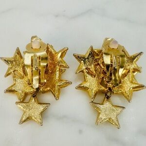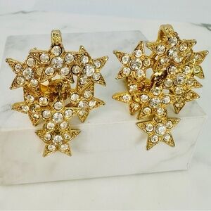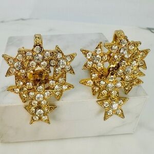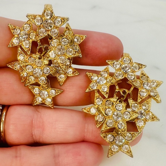 Vintage 80s Star Cluster Earrings Clip On Crystal Disco Glam Articulated Dangle