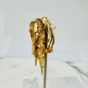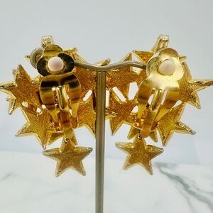 Vintage 80s Star Cluster Shower Earrings Clip On Crystal Disco Glam Articulated Dangle Gold-Tone