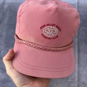 Vintage 80's Star Valley Ranch Country Club Wyoming Pink Roper Strapback Hat Cap Golf Golfing. The hat is in good vintage condition. Has a great shape and fit. Will be shipped in a box. See photos for extra details. Feel free to message me with any questions.