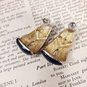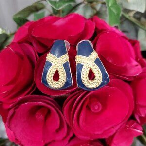 Vintage 80s Statement Earring Navy Blue Gold Rope