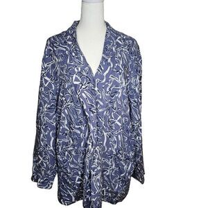 Vintage 80s Stefano Boyfriend Blazer Jacket Womens Size XL Blue Rayon Oversized
